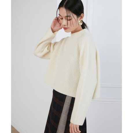モックネッククロップドニット