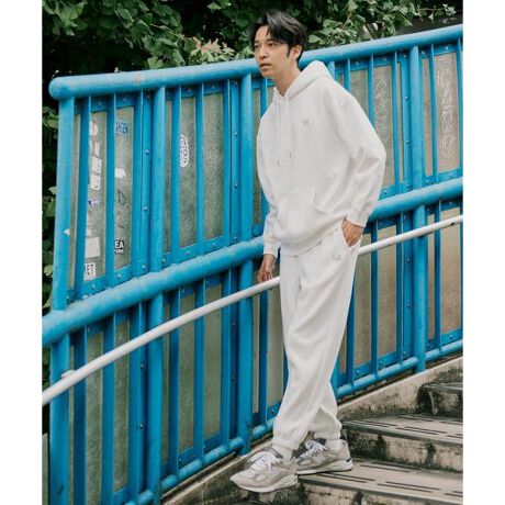 ・同素材のスウェットパーカーとのセットアップコーデもおすすめ