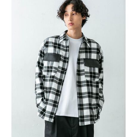 トレンドのCPOシャツのフラップにフェイクレザーでデザインアレンジした雄一無二のルックス。