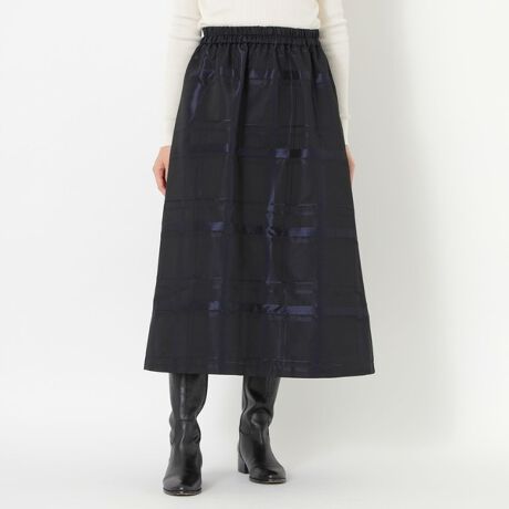 たて糸にマットなポリエステル、よこ糸にブライトのポリエステルを使用し、陰影のあるチェック柄をジャカード織で表現したメモリータフタ素材です。