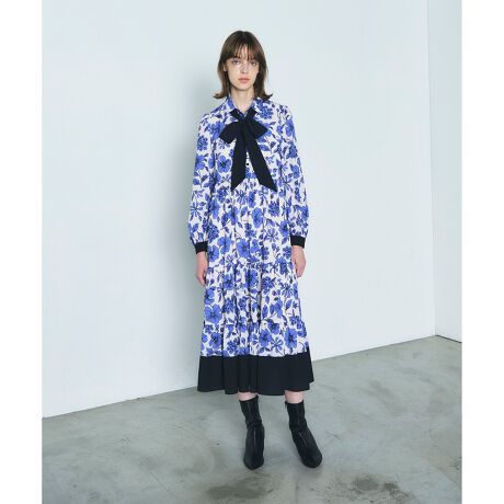 エレガントなタッチのオリジナルフラワープリントが印象的なシャツワンピース。