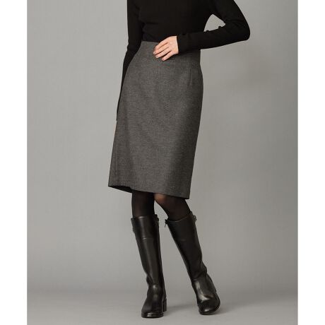 ■デザインスッキリと見えるコンパクトなツイードのスカートです。ブーツに合わせやすい新鮮なレングスがポイントで、同シリーズのテーラードジャケットとのセットアップ着用もおすすめです。