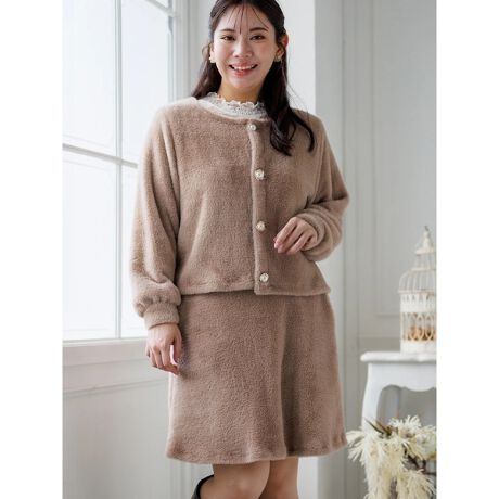 シャギーカーディガン×スカートセットアップ