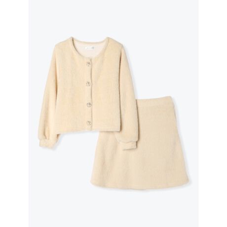 ふわふわのシャギー素材で仕立てられたほっこりあたたかみのあるセットアップ。