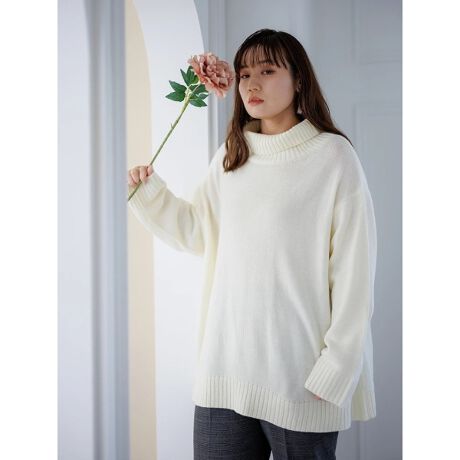 首元を優しく包み込むタートルネックもポイント。ゆるっとしたオーバーシルエットで、華奢な印象にみせてくれるのも魅力です◎