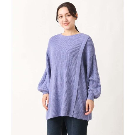 ゆったりとしたドロップショルダーにパフスリーブのケーブル編みが可愛いニット。