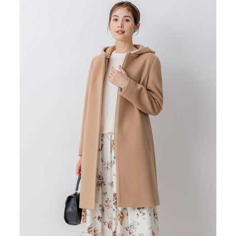■デザインすっきりとしたシルエットで女性らしいデザインのフーディコートです。取り外し可能なフードをとれば、ノーカラーコートとして着用いただけます。襟元のあきは、ファーやストールなどと相性の良いバランスにしており、合わせる小物によっても雰囲気が変わります。程よい抜け感でカジュアルにもキレイ目にもスタイリングしやすく、オンにもオフにも様々なシーンに活躍する万能コートです。