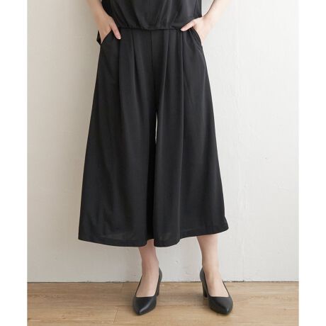 薄くて清涼感のあるカットソー素材が特徴で、キチンとした場にもタウンにも使えるスカーチョパンツです。