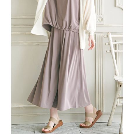薄くて清涼感のあるカットソー素材が特徴で、キチンとした場にもタウンにも使えるスカーチョパンツです。