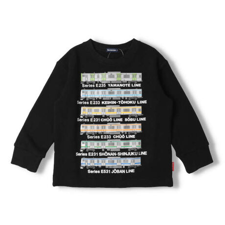 直営ネットショップと専門店、セレクトショップ限定のアイテム!男の子が大好きな電車!毎シーズン大人気のJRコラボシリーズです!関東地区を走るJRの在来線の山手線、総武線、京浜東北線、中央線、湘南新宿ライン、常磐線のプリント入り!並んだ車体のプリントが可愛いトレーナー、スウェット。秋から春まで長く着られる裏毛素材。山手線、京浜東北線、中央総武線のバックプリントもポイント!【アイテム】長袖 ロングスリーブ トップス カジュアル お洒落 オシャレ かっこいい かわいい 可愛い 普段着 デイリーウェア お出かけ着 お外遊び着 子ども こども 男児 男の子 ボーイズ キッズ ベビーサイズ トドラーサイズ 幼稚園 保育園 小学校 通園 通学 小学生 2023年秋冬物新作 丸高衣料 鉄道 子鉄 車両 電車 電鉄 トレイン コットン100% 綿100% ブラック 黒色 ブルー 青色 ムージョンジョン