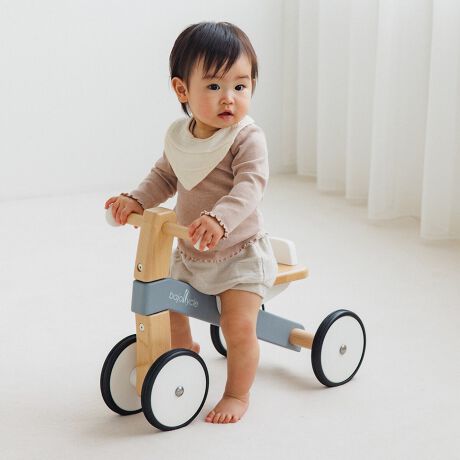 腰がすわり上半身が安定し、そろそろ「あんよ」がはじまる頃にそろえておきたい室内用の木製バイクです。