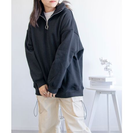 オーバーサイズハーフジップスウェット