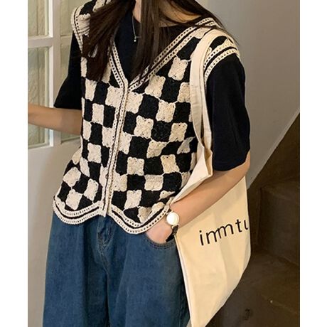 ニット編みチェック柄ベスト