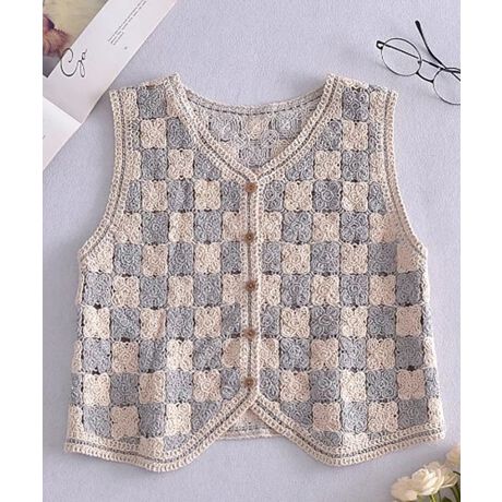 ニット編みチェック柄ベスト