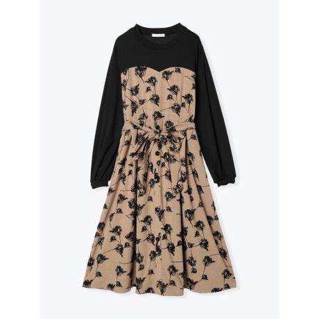 線画調の花柄フロッキーがフェミニンな印象のワンピース。