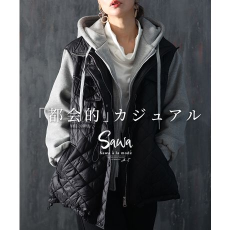 都会的な雰囲気漂うレイヤード風アウターです。シックな配色でカジュアルながらも洗練された印象にレイヤード風だから羽織るだけで様になり、暖かに着心地。ドロストで変幻自在にシルエットを遊ぶことも可能です。