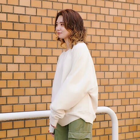 ラグランスリーブは肩の付け根に切り替えが無い為、肩幅を目立たなくする効果や、女性でも落ち感を楽しめます。吊り裏毛コットン素材は空気を含み、柔らかい風合いと自然な立体感の出る反応染め仕様に。ゆったりとしたリラックスシルエットで、だらしなく見えない着丈に調整。スウェットによくある前身頃が落ちるシルエットを解消する為、前後の着丈を2cm調整しフラットにしたところもこだわりポイント。