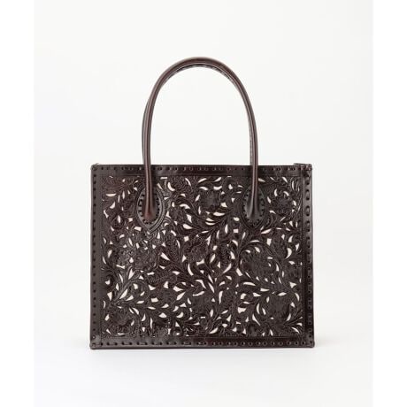 CARVING TRIBESよりトートバッグが登場。前面に施した伝統的な草花のカットワークが上品に映える一品です。上質な牛革を使用したスクエア型の端正なフォルムで、オンオフ兼用でご愛用いただける一品です。