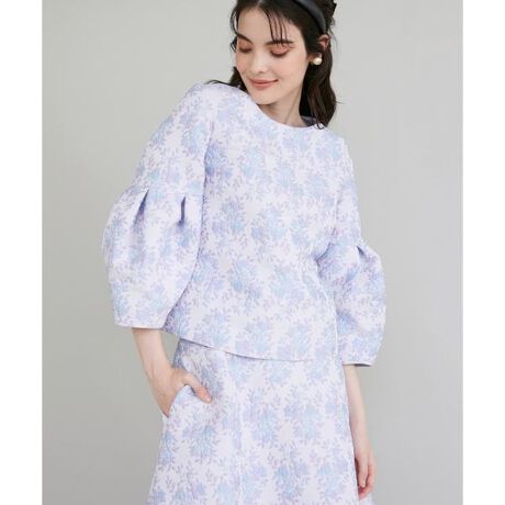 ラベンダー×サックスの上品な配色にフラワー柄が映えるオリジナルジャガードブラウス。生地のハリを最大限に活かした構築シルエットがポイントで、トレンドのランタンスリーブとダーツを入れたスッキリウエストでモード感と大人の可愛さを両立します。やや短めの着丈で脚長効果もプラスし、アウトしてもバランスが良く着こなしの幅を広げます。同素材のスカートを合わせた華やかなセットアップはもちろん、ブラウスを主役にした着回しコーデもおすすめです。・裏地あり・後ろファスナーあり・水洗い可セットで着られるスカート品番:5134152012■サンプル撮影商品■こちらの商品はサンプルでの撮影となっております。実際の商品とは、サイズや色味、素材、デザイン等の仕様が若干変更になる場合がございます。