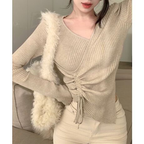【Jasmine】Vネックウエストギャザーリボンニットトップス