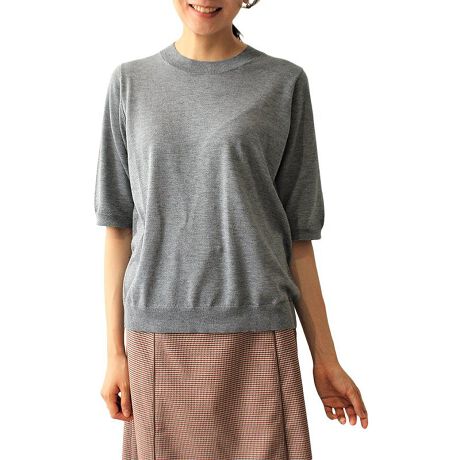 同素材のクルーネックカーディガン「340451」とアンサンブル可能な5分袖のニットプルオーバーです。
