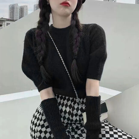 シンプルなデザインのニットとコーデにアクセントを与えてくれるアームウォーマーがセットになったお得なニットトップス