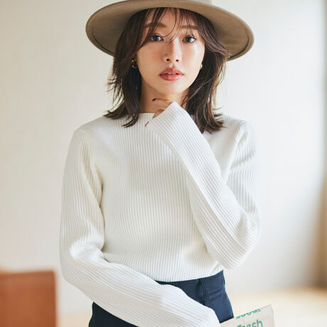 肉厚でピタッとしたシルエットのニットです。シンプルでタイトなデザインなので、ふわっとしたスカートと合わせても良さそうですし、冬のジャケット下のインナーとしても重宝しそうです。