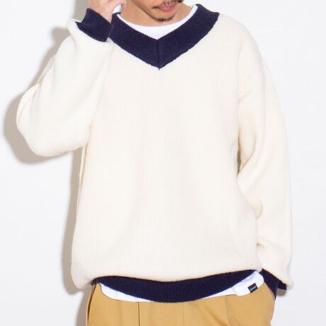 着こなしに差が付くカレッジライクな雰囲気が魅力の配色ニット。