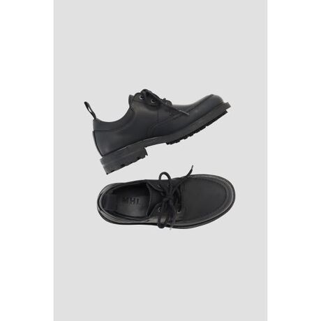 タフなブラックレザーにグリス加工を施したシューズ。無骨なソールユニットとシンプルなデザイン、重厚なシームステッチ、オーバーサイズのアイレットを採用。ラストはモダンな形状で、履き口にパッドを入れて履き心地にも拘ったアイテム。