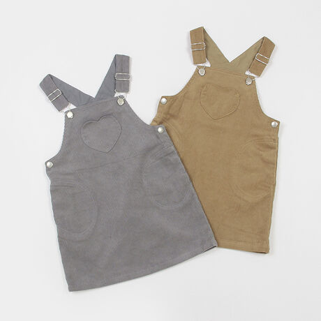 ハートポケットがシンプルなデザインに映えるジャンスカです。装飾を控えてインナー選びまで楽しめる一着に仕上げました。サイドにスナップボタンつきで着脱しやすく、肩ひもの長さを調節できるアジャスター機能を備えているのもうれしいところ。両側にポケットを備えており、ハンカチなどもスムーズに持ち運べます。【おすすめの着用時期は秋冬シーズン】【透け感】透けない【生地の厚さ】普通【伸縮性】なし【裏地】なし【ポケット】あり【アジャスター】なし