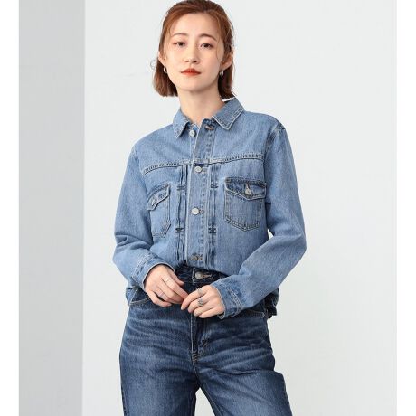 コンパクトで立体感のある身頃と、袖のフィット感、羽織った時の着心地にこだわったスタンダードなデニムジャケット。肩を華奢に見せながらも窮屈感が出ないようにパターンにこだわったアイテム。