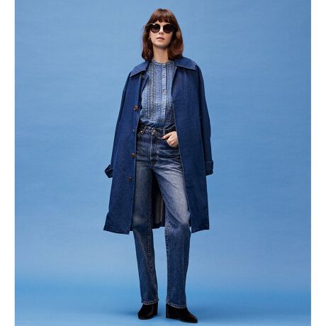 ゆったりとしたサイズ感のデニムステンカラーコート。ビックデティールデザインが身体を華奢にみせ、羽織るだけでおしゃれみえが叶います。シンプルなデザインなのでどんなコーディネートにもマッチします。