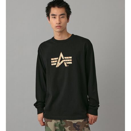 ALPHA INDUSTRIESのトレードマーク、FLYING A-MARKをプリントした長袖Tシャツです。