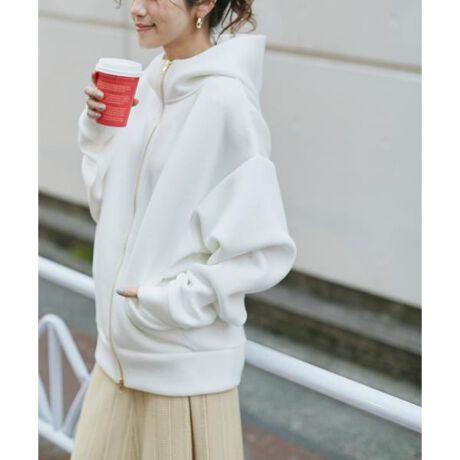 トレンド感のある着こなしが楽しめるゆるっとしたオーバーサイズパーカー。シンプルながらも洗練感を構築する肩にダーツを施したシルエットや、まるでスポンジのような軽く柔らかい素材感も魅力的。1枚羽織るだけで決まるゆるっとした抜け感のあるデザインが、デイリーの着回しから休日スタイルまで幅広く活躍します。