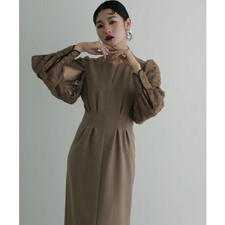 深いスリットスリーブが特徴的なデザインワンピース