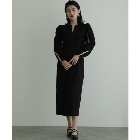 深いスリットスリーブが特徴的なデザインワンピース
