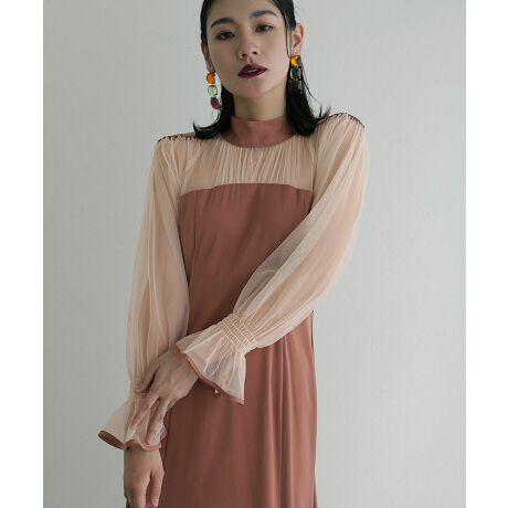 チュールのシアー感も相まって、程よく上品な肌見せが叶う1点です。
