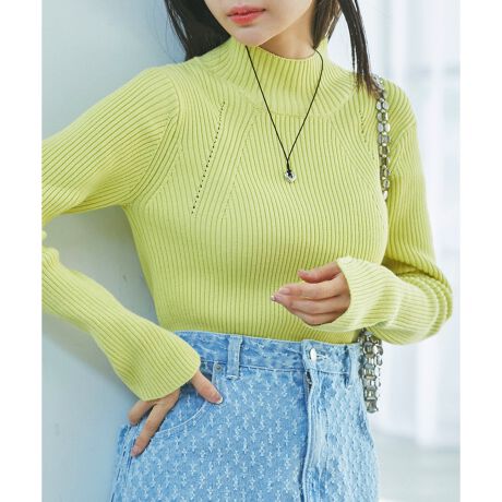 【洗える】袖スリットハイネックリブニット
