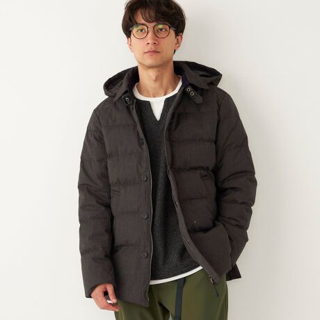 ウール調の素材を使用した上品な雰囲気のダウンジャケット。