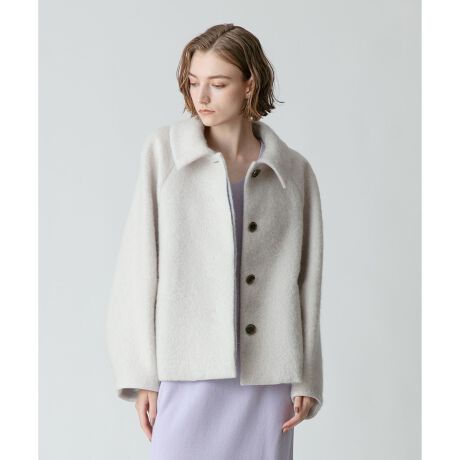 上質なモヘアシャギーを使用したショートコート。毛足の長いモヘアは発色もきれいで、遊び心のある素材。切り替えでボリュームを出したデザインスリーブと、丸みのあるステンカラーなど甘すぎない新しさがポイント。カジュアルにもきれいめにもはまるおすすめの素材です。【スタッフコメント】毛足が長くふわっとした素材感がなんとも可愛い1枚です。着心地はウールコートと比較するととても軽く、さらにショート丈なので気軽に羽織っていただけます。裏地もあり、アームはワイドなデザインなので中に厚手のニットも着込んでいただきやすいです。サックス系のカラーはダークになりやすい冬のコーデを爽やかにしてくれるのでオススメです。