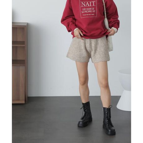 メランジ調のミックス糸が柔らかい表情に見せてくれる、ショート丈のニットパンツ。太番手の糸を畦編みにした、ふっくら凹凸のある肉厚なので、冬場まで着用いただけます。裾側が上がったキュロット型で、裾まわりに幅がある分、太ももを細く見せてくれます。シャツやゆるニット合わせはもちろん、タートルインナー×スウェットを合わせた、カジュアルな着こなしもオススメ。※モデルの着用画像の場合、光の当たり具合により、実際の色味と異なって見えることがございます。色味は、商品単体の画像をご参照ください。