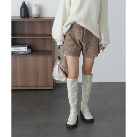 メランジ調のミックス糸が柔らかい表情に見せてくれる、ショート丈のニットパンツ。太番手の糸を畦編みにした、ふっくら凹凸のある肉厚なので、冬場まで着用いただけます。裾側が上がったキュロット型で、裾まわりに幅がある分、太ももを細く見せてくれます。シャツやゆるニット合わせはもちろん、タートルインナー×スウェットを合わせた、カジュアルな着こなしもオススメ。※モデルの着用画像の場合、光の当たり具合により、実際の色味と異なって見えることがございます。色味は、商品単体の画像をご参照ください。