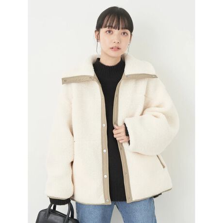 ボア×ナイロンのリバーシブルデザインに仕上げたブルゾン。