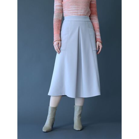 大きめなポケットと深めにとったボックスタックが印象的なミディ丈スカート。広がりすぎない絶妙なフレアシルエットが女性らしさとモードなバランスを両立します。バックゴムにファスナー仕様で履き心地の良さを叶えながら、フロントはフラットに仕上げることでトップスインしたスタイリングやショートトップスとのバランスが様に。オンオフ問わず、ロングシーズンでのスタイリングをお楽しみいただけます。