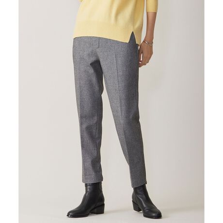 ■デザインセンタープレス入りでキレイ目な印象のテーパードパンツ。股上を少し浅くして、履きやすいように改良しました。後ろのウエスト部分はゴム仕様のため、快適な履き心地ながらすっきり見えを叶えます。コーディネートに取り入れやすい、落ち着いたカラーも魅力です。脚を美しく見せる細みのシルエットで、トップスを選ばずスタイリングを楽しめます。デイリーにもオフィスにも着回せる、優秀アイテムです。裏地なしのため長い期間ご着用いただけます。