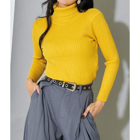 幅広いシーンで大活躍するリブニットタートルネック。