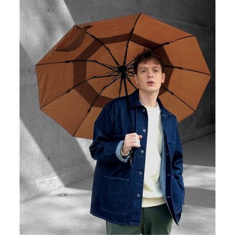 またタフな使用に耐えられるように、グラスファイバーを使った10本骨構造でありながら、突風でも、傘布のめくれや、骨の破損が無いようにベンチレーション機能も搭載。