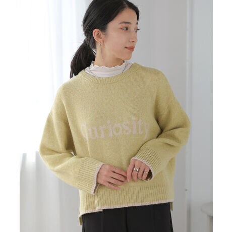 ロゴが入ったふわふわニットのショート丈プルオーバー。ロゴ同色のラインが袖口と裾に入ってアクセントになっております。ショート丈で両枠にスリット入りなのでどんなボトムとも合わせやすいです。ロゴの意味は「好奇心」