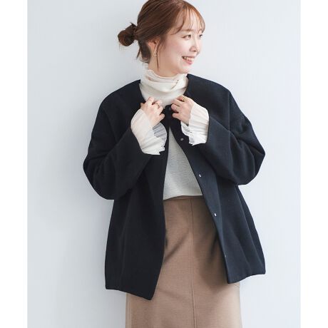 着まわしやすくて女性らしいノーカラータイプで