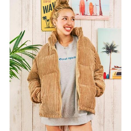 ボリュームのあるコーデュロイ素材がシーズンライクなダウンジャケット。